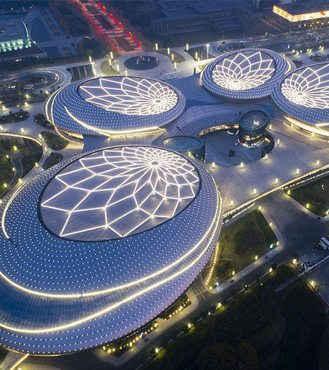 With the theme of Chinese wisdom in urban development, the2010World Expo Shanghai China Pavilion shows the Chinese cultural spirit and temperament of "the Crown of the Orient, the Prosperity of China, the Granary of the World, and the Rich People". The paviliontakes "seeking" as the main line, leading spectators to walk in the three exhibition areas: "Oriental Footprints", "Searching Journey" and "Low Carbon Action", so as to discover and feel the Chinese wisdom in urban development.